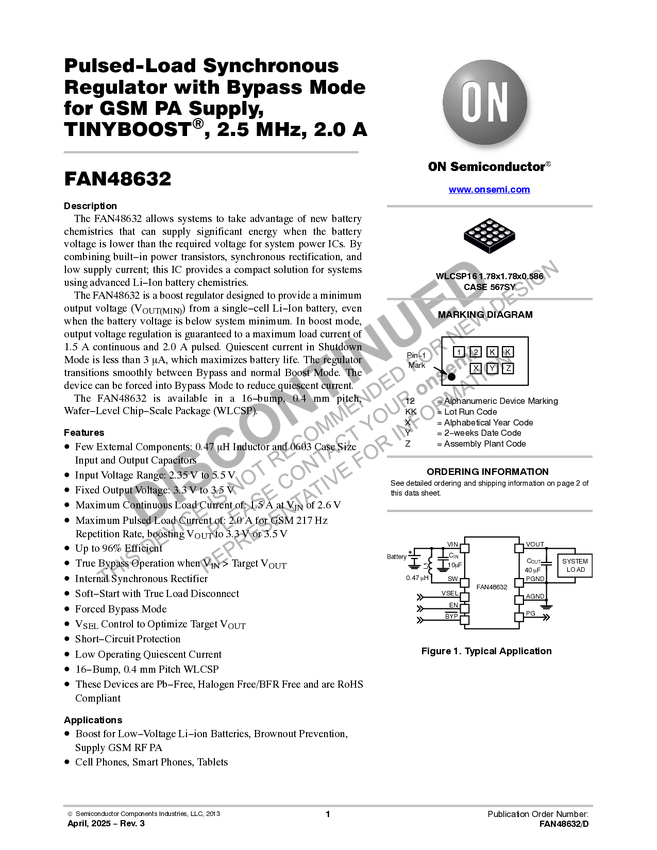 2.5 MHz, 2.0 A Pulsed-Load Synchronous TinyBoost™ Regulator with Bypass Mode for GSM PA Supply