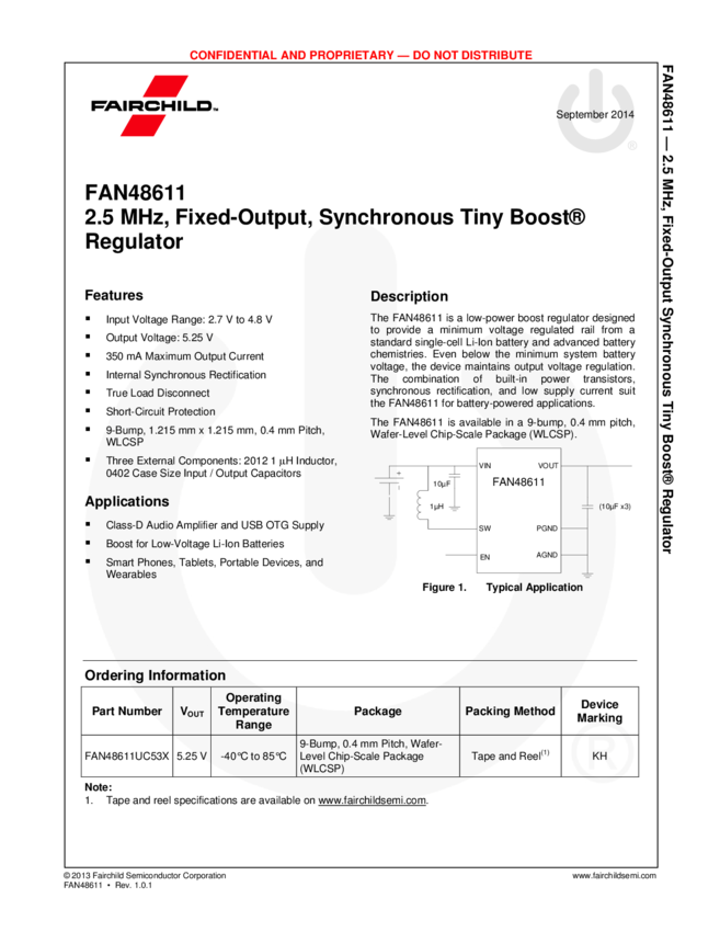 2.5 MHz, 1 A, Fixed-Output Synchronous TinyBoost® Regulator