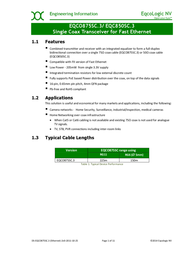 EQCO875SC.3 and EQCO850SC.3 Data Sheet (03/10/2014)