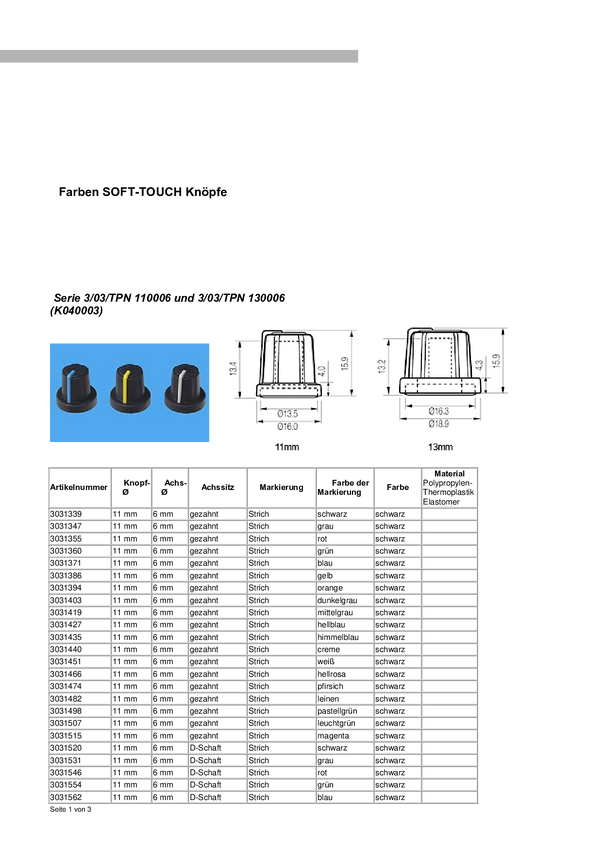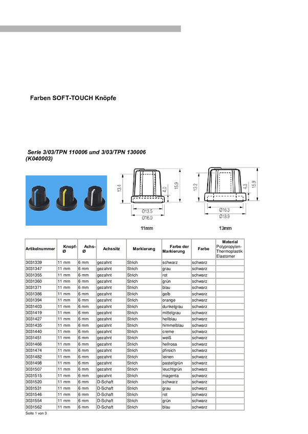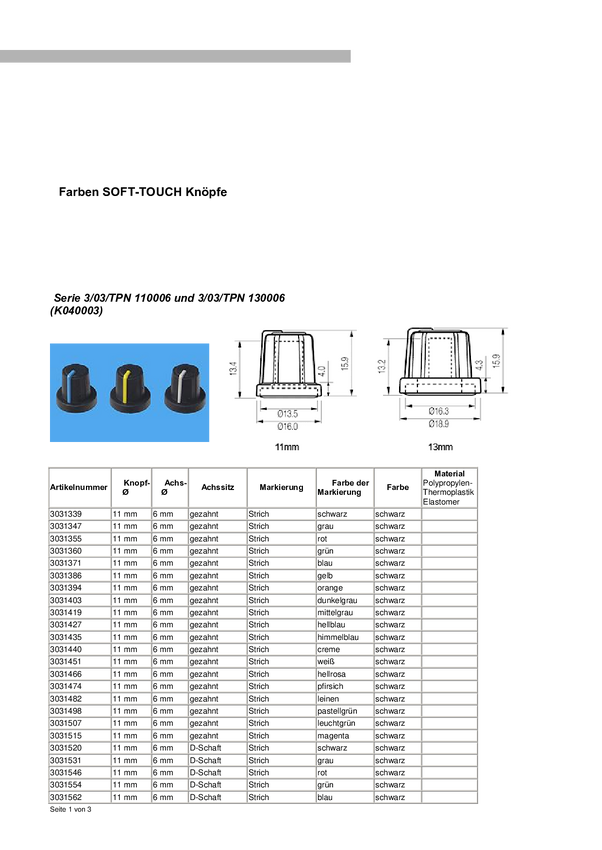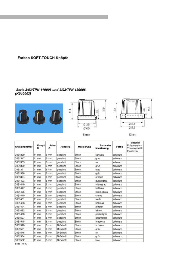 PB Fastener 3/03/TPN 130006 Blk/Gy 3/03/TPN 130006 Pokrętło ze wskaźnikiem czarny, szary (Ø x W) 19 mm x 16 mm 1 szt.