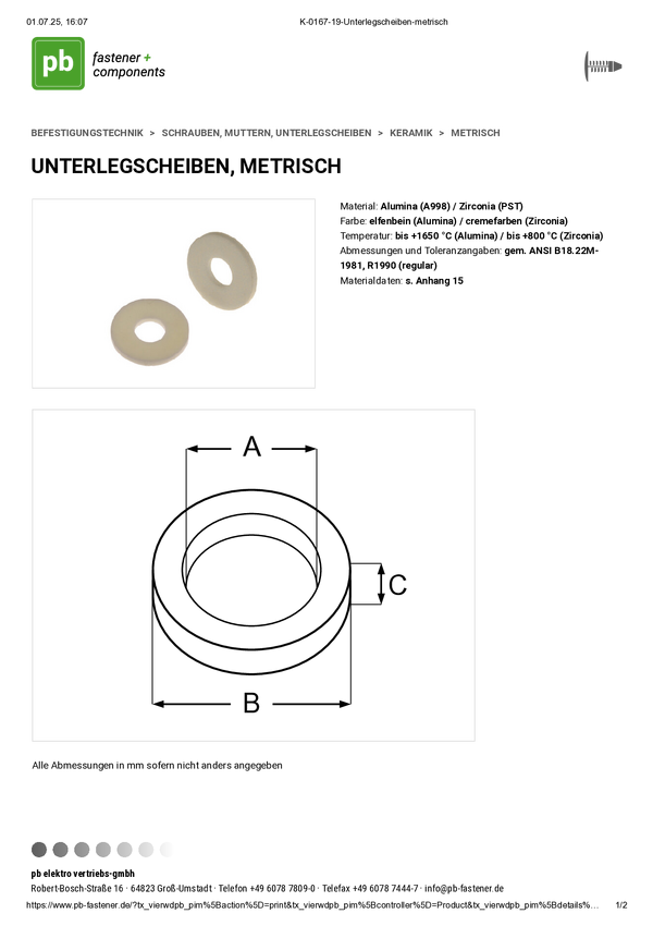 Podkładka PB Fastener 702387 ceramika 1 szt.