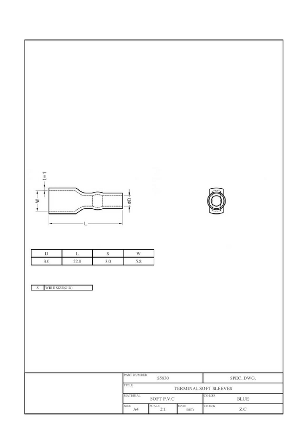 Osłona konektora; S5830; do konektorów 4,8mm; fi 3mm; proste; matowa / naturalna; FIX&FASTEN; RoHS; opakowanie/100szt