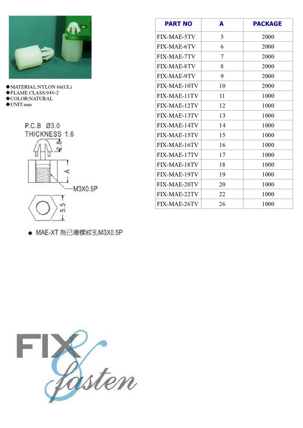 Dystans; PCB; poliamid; Dł:10mm; naturalny; fi otw:3mm; FIX&FASTEN; FIX-MAE-10TV; op/100szt
