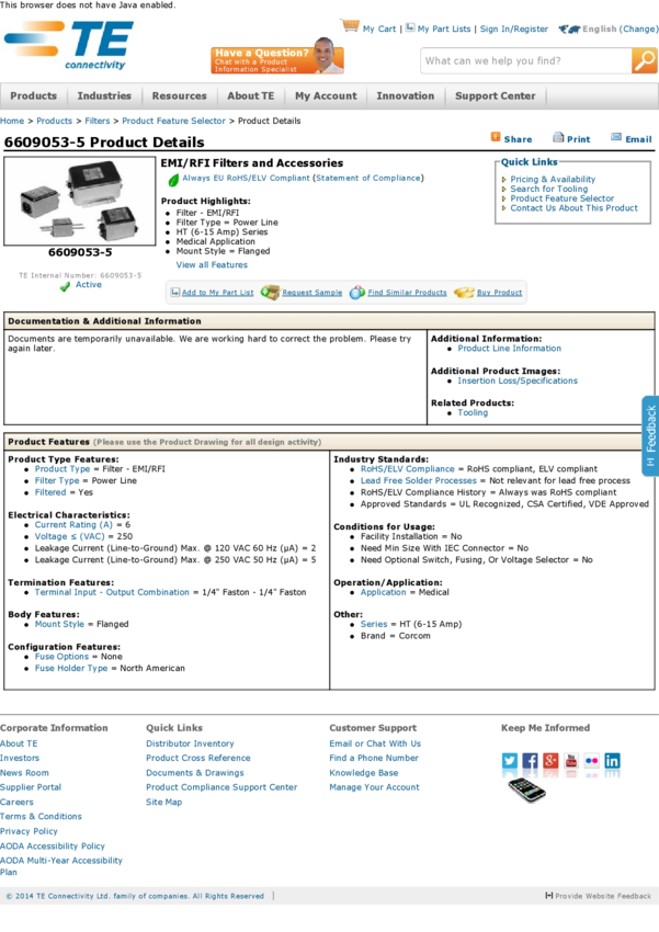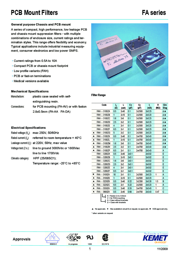 Power Line Filter 50Hz/60Hz 6.5A 250VAC Faston Through Hole