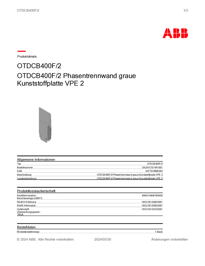 ABB 1SCA157314R1001 Ścianka podziału fazowego 1 szt.