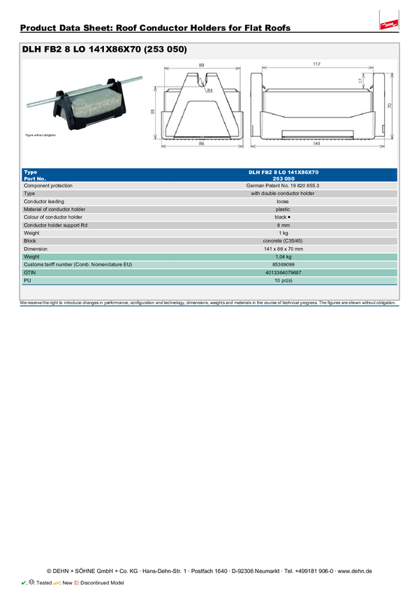 DEHN 253050 DLH FB2 8 LO 141X86X70 Element montażowy 1 szt.