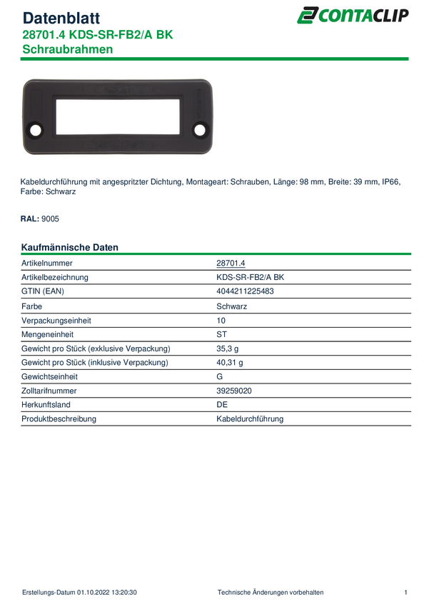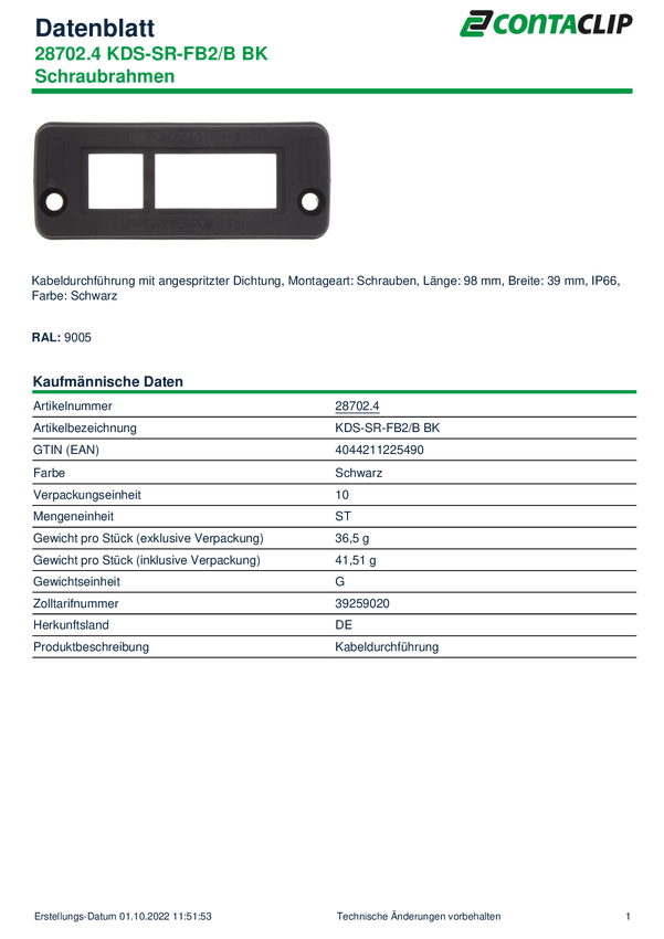CONTA-CLIP KDS-SR-FB2/B BK Przepust kablowy poliamid 6.6 czarny 1 szt.