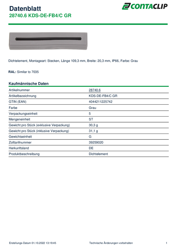 CONTA-CLIP KDS-DE-FB4/C GR Element uszczelniający termoplastyczny elastomer szary 1 szt.