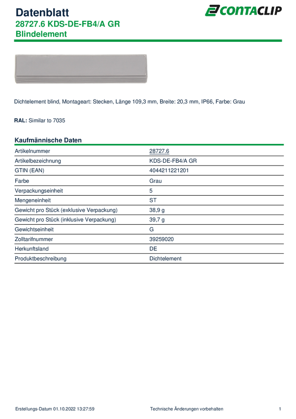 CONTA-CLIP KDS-DE-FB4/A GR Element uszczelniający termoplastyczny elastomer szary 1 szt.