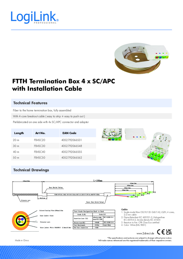 LogiLink FB4SC20 światłowodowe do światłowodów kabel 20 m biały Singlemode OS2