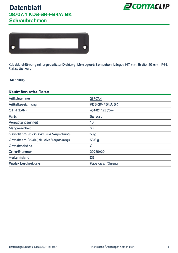 CONTA-CLIP KDS-SR-FB4/A BK Przepust kablowy poliamid 6.6 czarny 1 szt.