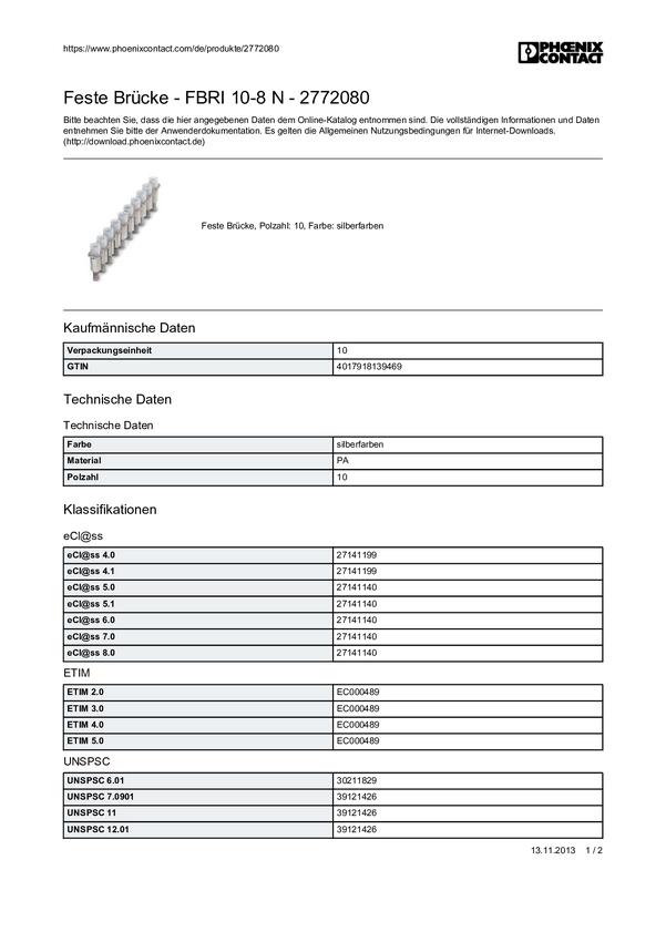 Mostek stały Phoenix Contact FBRI 10-8 N