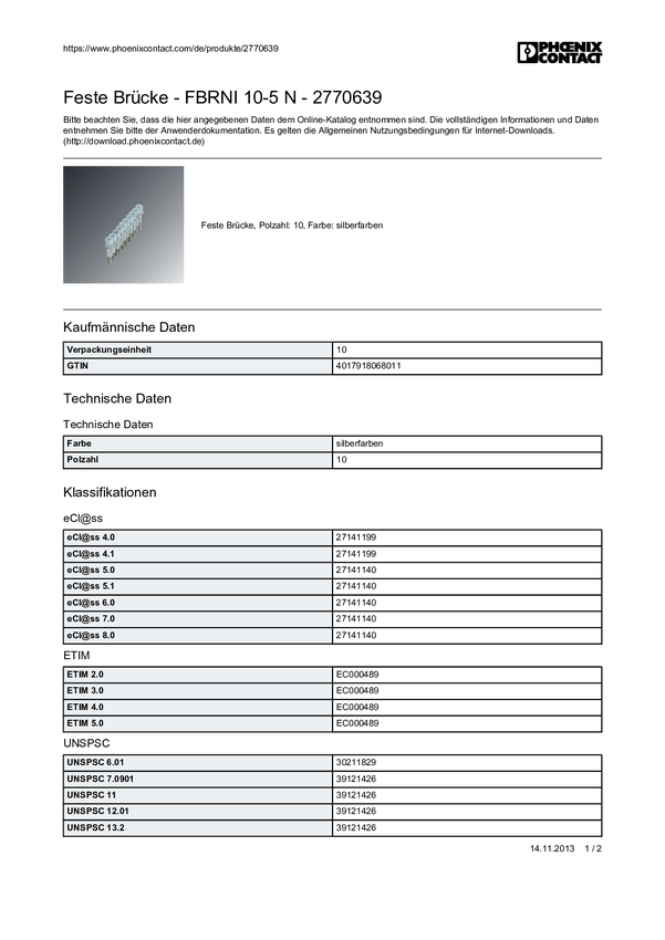 Mostek stały Phoenix Contact FBRNI 10-5 N