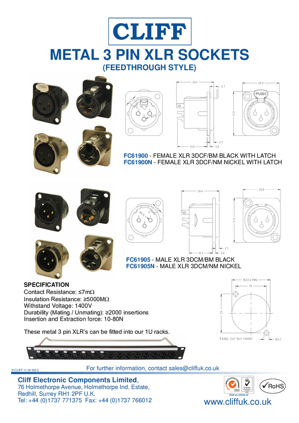 Cliff FC61905N Złącze męskie XLR złącze męskie do wbudowania Ilość styków: 3 nikiel 1 szt.