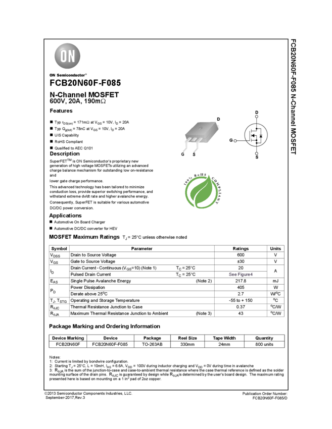 N-Channel MOSFET 600V, 20A, 190mΩ,