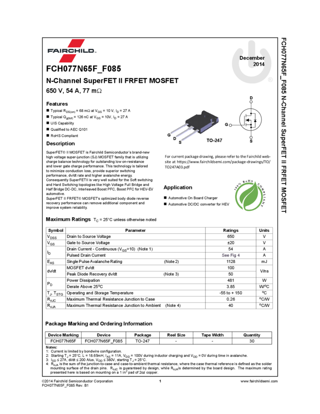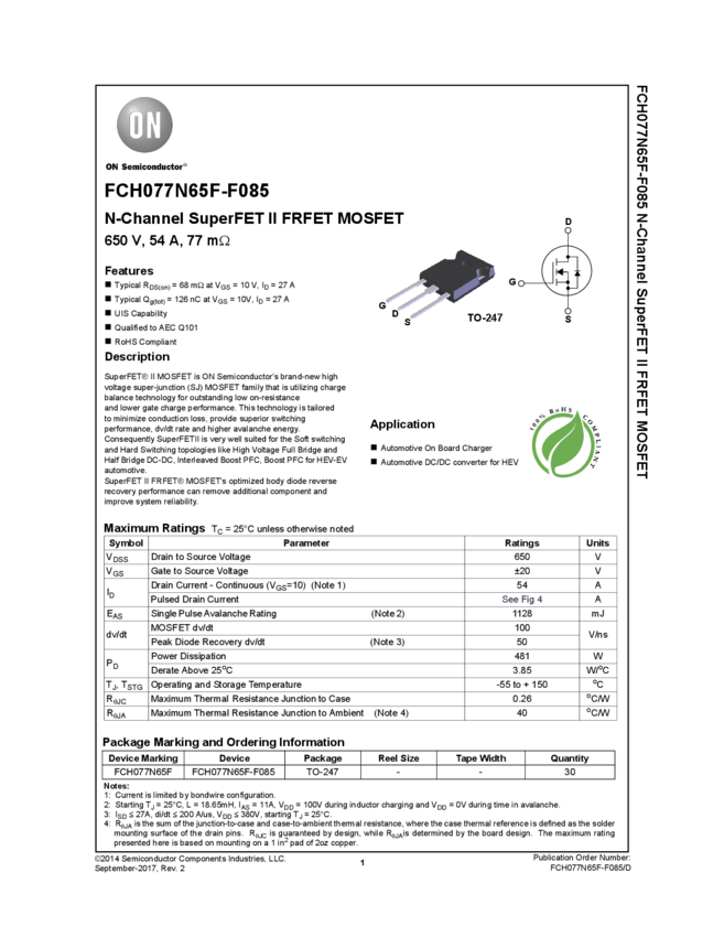 N-Channel SuperFET II FRFET MOSFET 650 V, 54 A, 77 mΩ