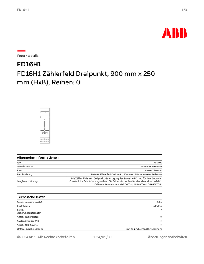 Pole licznika Striebel & John FD16H1 2CPX054044R9999, 250 mm x 900 mm , 1 szt.