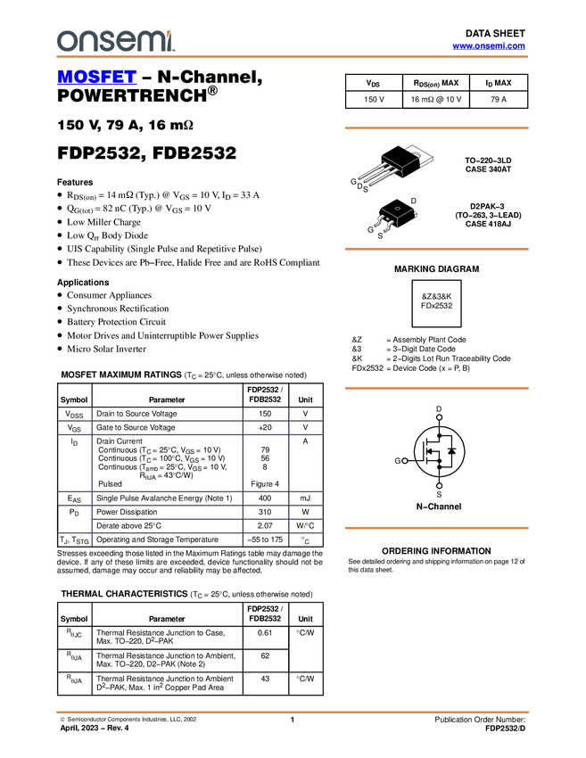 N-Channel PowerTrench® MOSFET 150V, 79A, 16mΩ