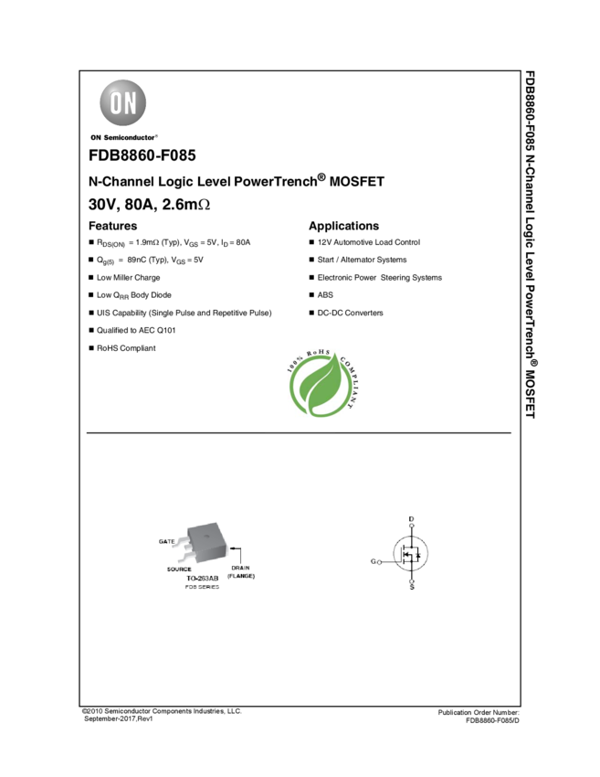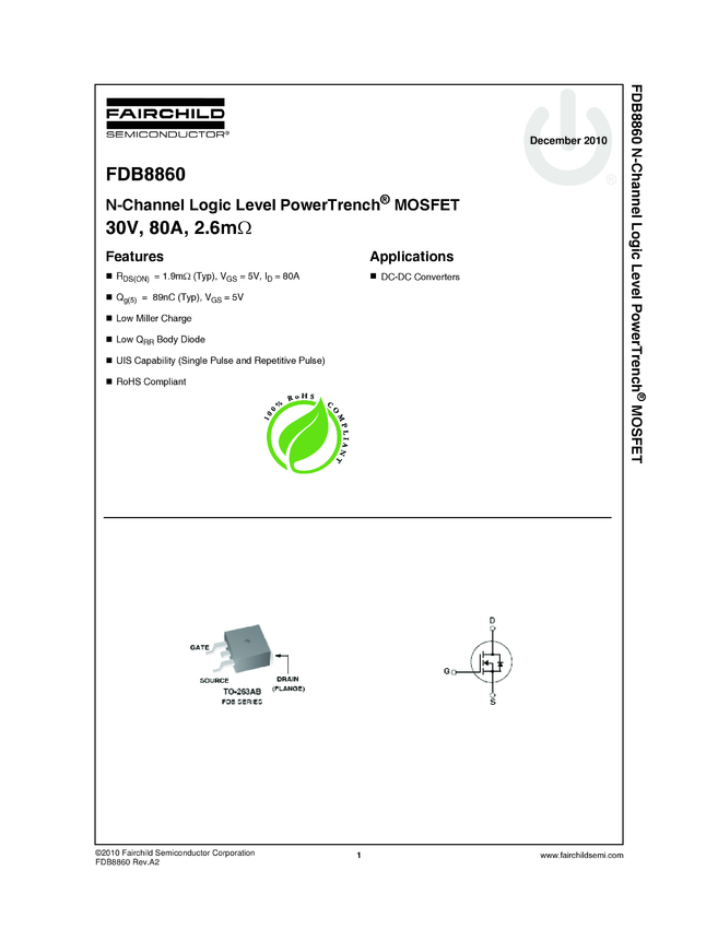30V, 80A, 1.9mΩ, D2PAK, Logic Level N-Channel PowerTrench®