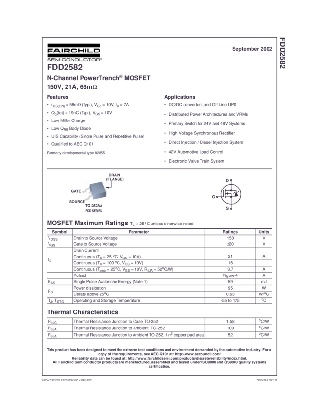 N-Channel PowerTrench® MOSFET 150V, 21A, 0.066 Ohm