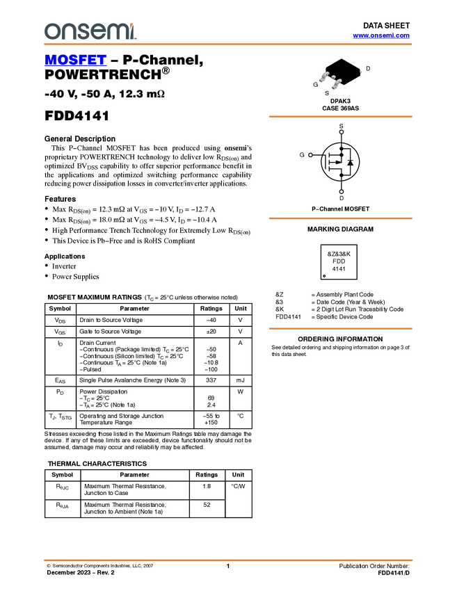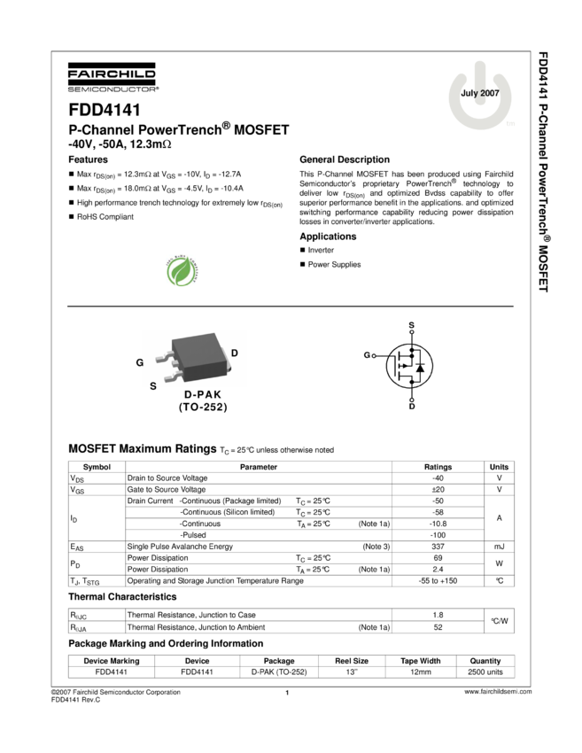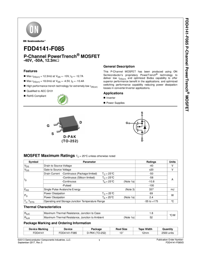 -40V, -12.7A, 12.3mΩ, DPAKP-Channel PowerTrench®