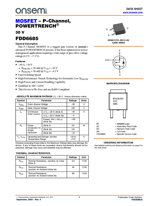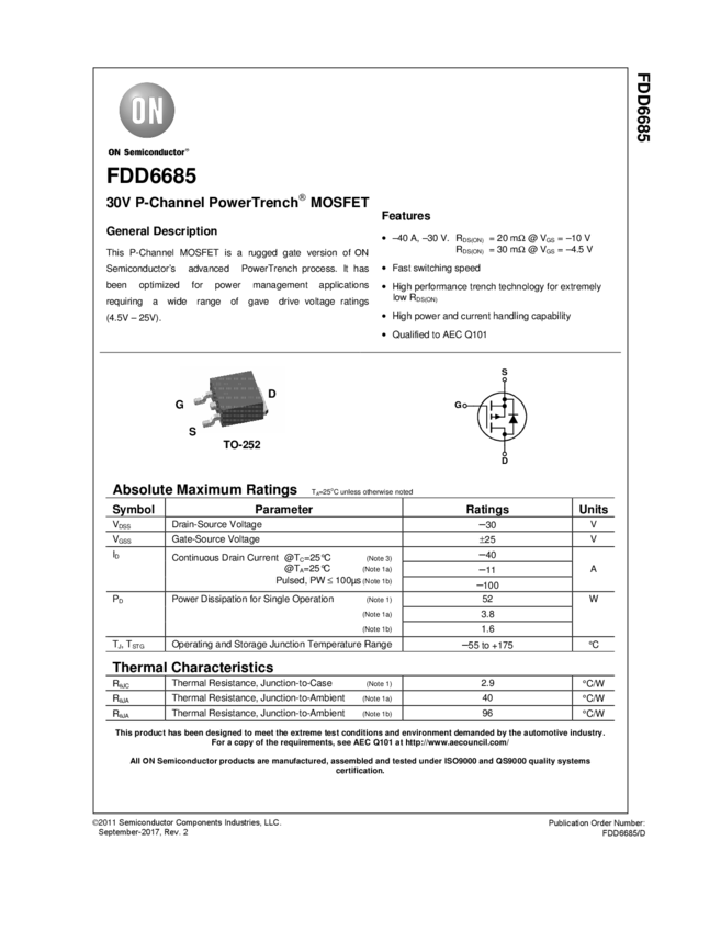 30V P-Channel PowerTrench<sup>® MOSFET -40A, 20mΩ