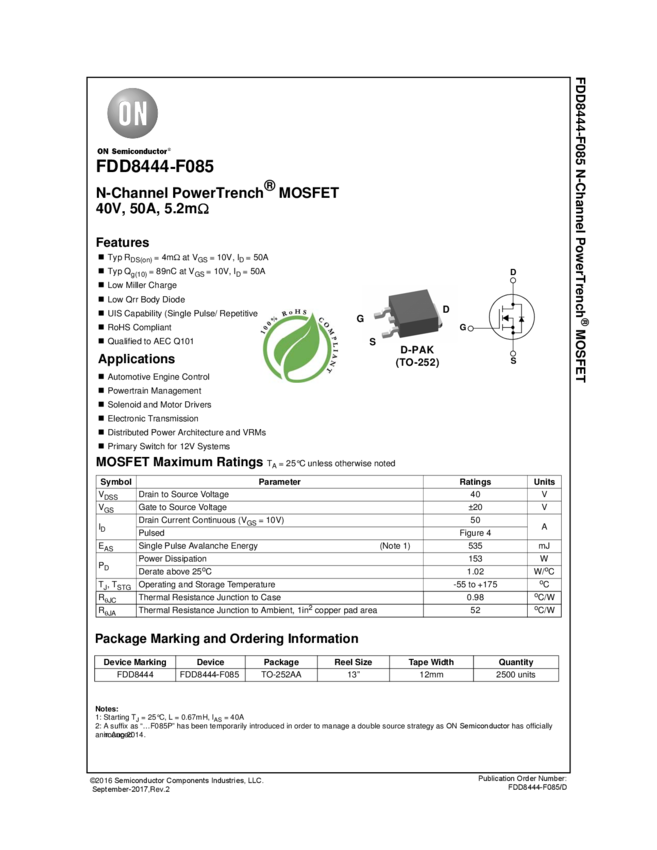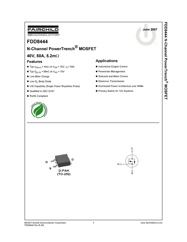 40V, 50A, 3.8mΩ,l DPAK N-Channel PowerTrench®