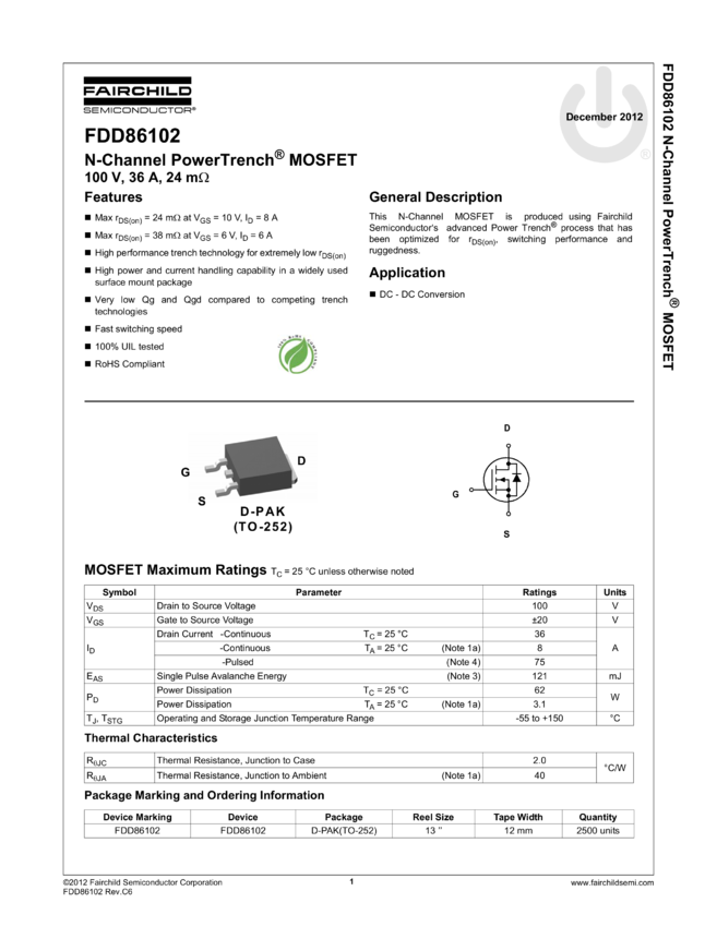 N-Channel Shielded Gate PowerTrench<sup>® MOSFET 100 V, 36 A, 24 mΩ