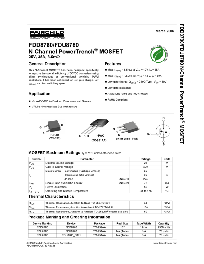 N-Channel PowerTrench<sup>® MOSFET 25V, 35A, 8.5mΩ