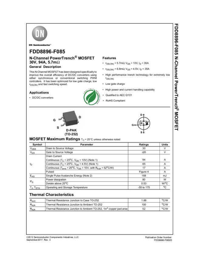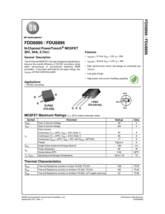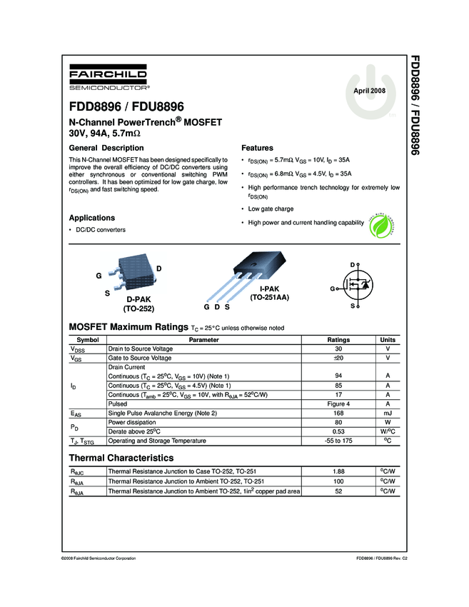 30V, 94A, 4.7mΩ,l DPAK N-Channel PowerTrench®