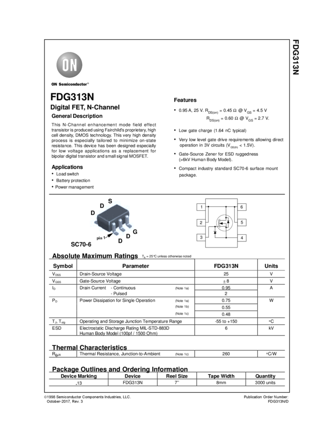 N-Channel Digital FET 25V, 0.95A, 0.45Ω