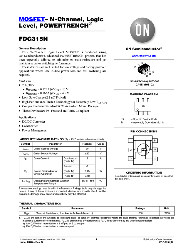 N-Channel Logic Level PowerTrench<sup>® MOSFET 30 V, 2 A, 120 mΩ