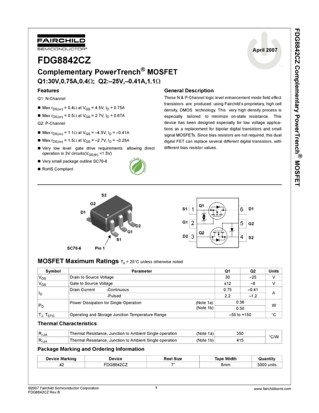 Q1:30V/Q2: -25V Complementary PowerTrench® MOSFET