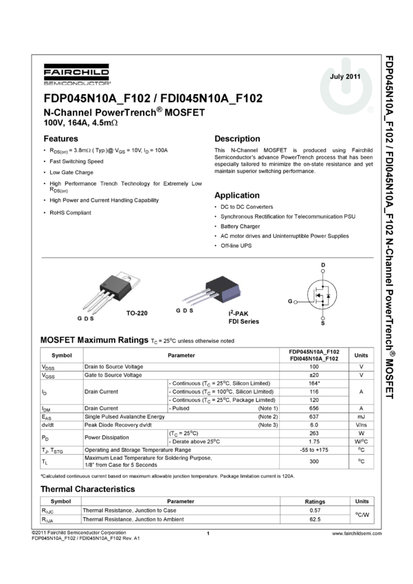 N-Channel PowerTrench® MOSFET 100V, 164A, 4.5mΩ