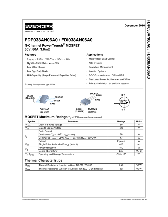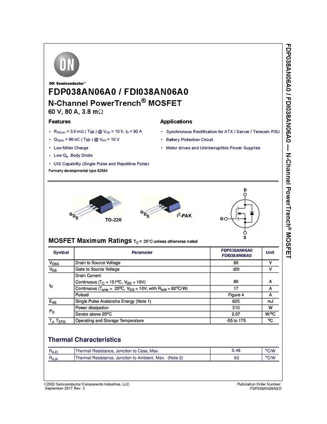 N-Channel PowerTrench® MOSFET 60V, 80A, 3.8mΩ