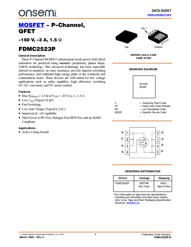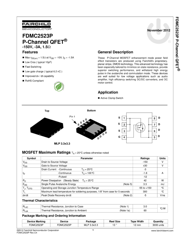 P-Channel QFET<sup>® MOSFET -150V, -3A, 1.5Ω