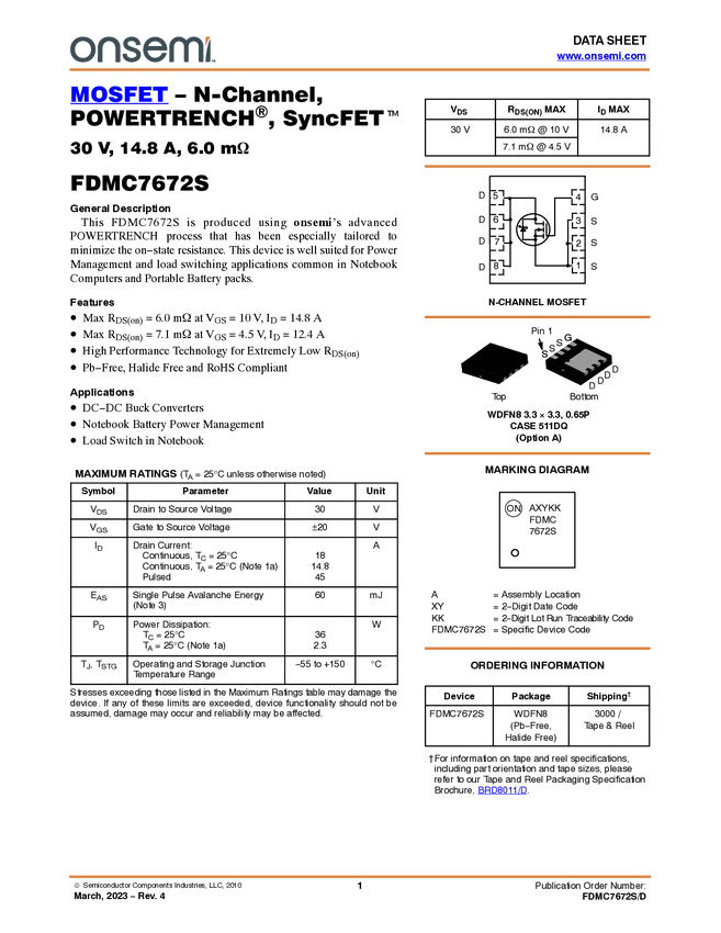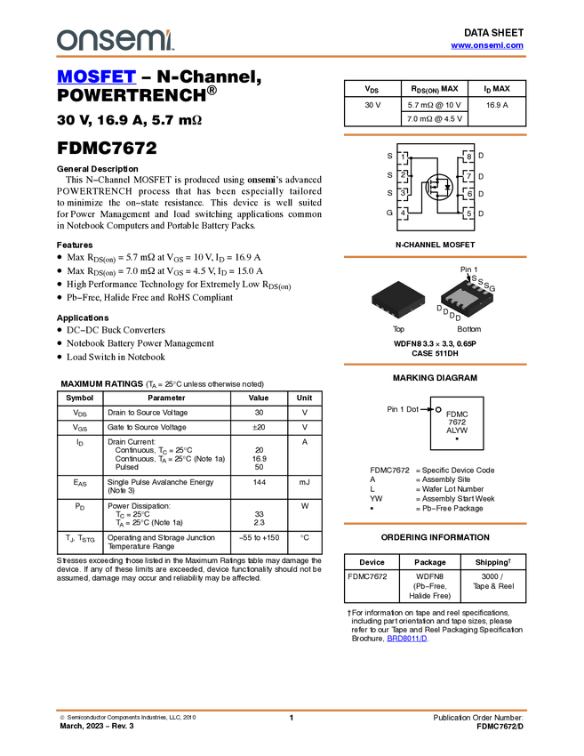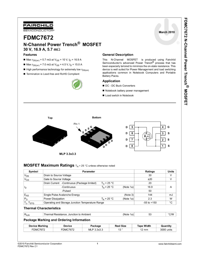 N-Channel Power Trench® MOSFET 30V, 16.9A, 5.7mΩ
