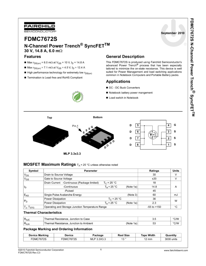 N-Channel Power Trench<sup>® SyncFET™ 30V, 14.8A, 6.0mΩ
