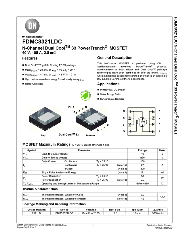 N-Channel Power Trench<sup>® MOSFET 40V, 108A, 2.5mΩ