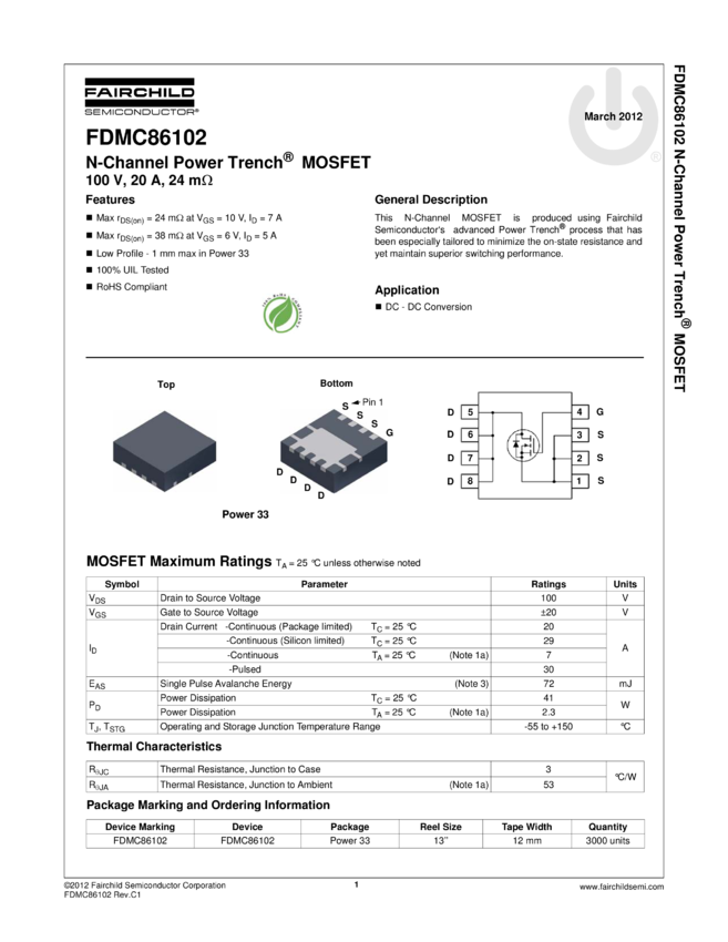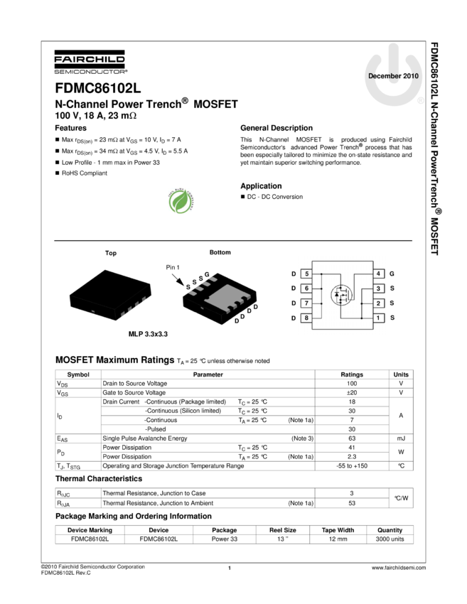 100V N-Channel Shielded Gate PowerTrench®MOSFET