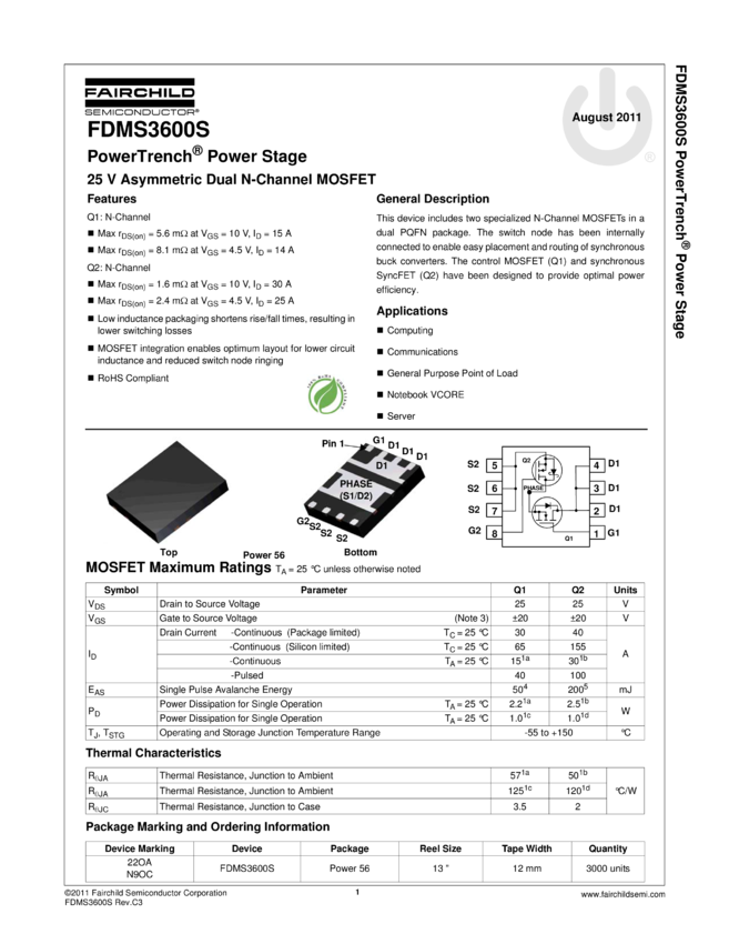 25 V Asymmetric Dual N-Channel MOSFET PowerTrench® Power Stage