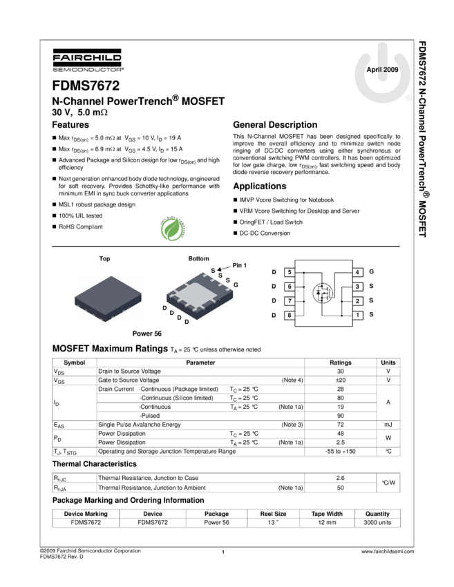 N-Channel PowerTrench<sup>® MOSFET 30V, 5.0mΩ