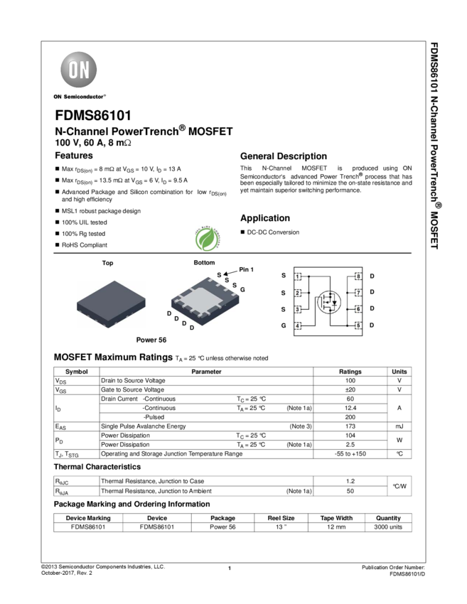 N-Channel PowerTrench<sup>® MOSFET 100V, 60A, 8mΩ
