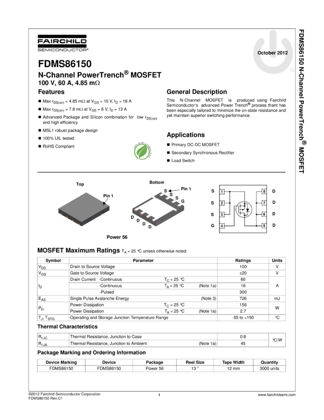 N-Channel Shielded Gate PowerTrench® MOSFET 100V, 80A, 4.85mΩ