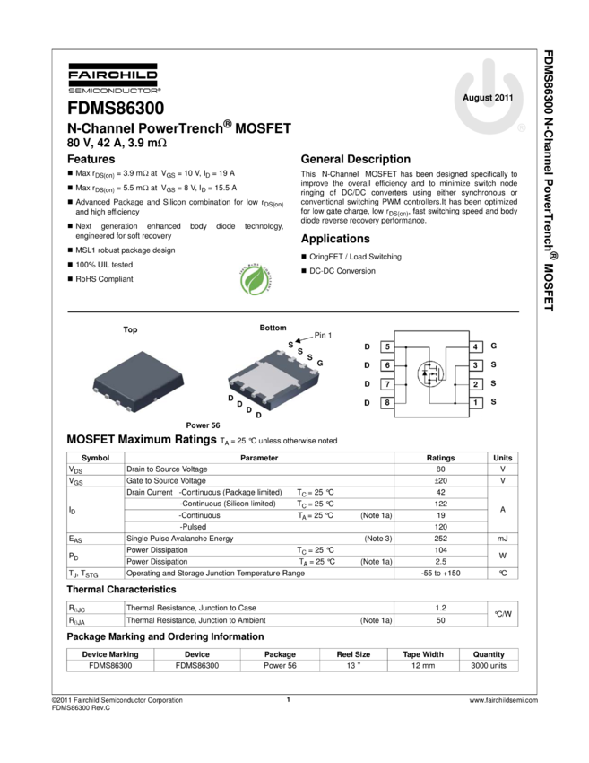 N-Channel Dual Cool<sup>TM 56 PowerTrench<sup>® MOSFET 80V, 110A, 3.1mΩ