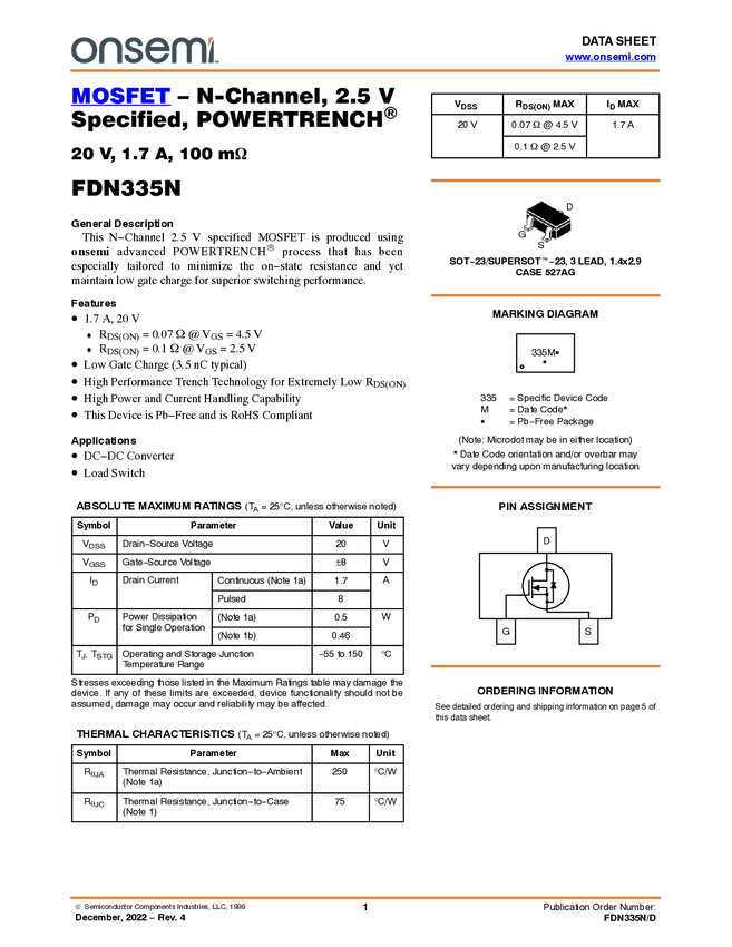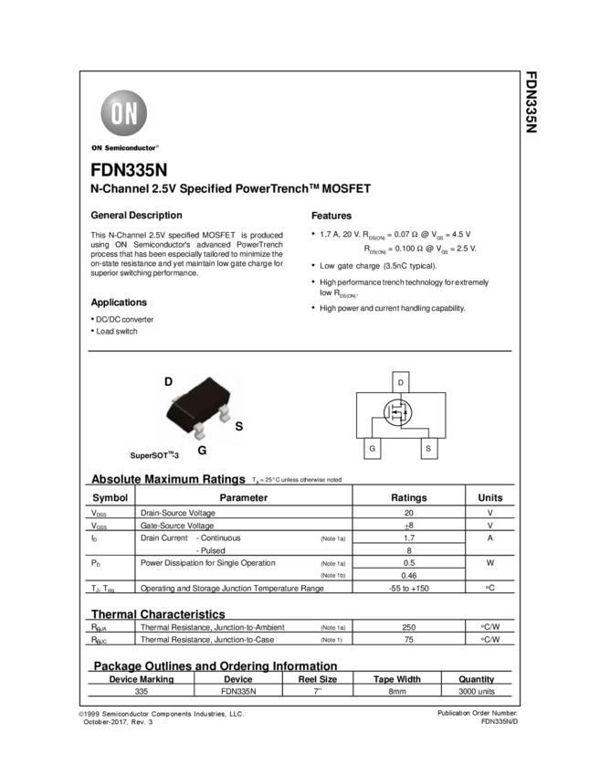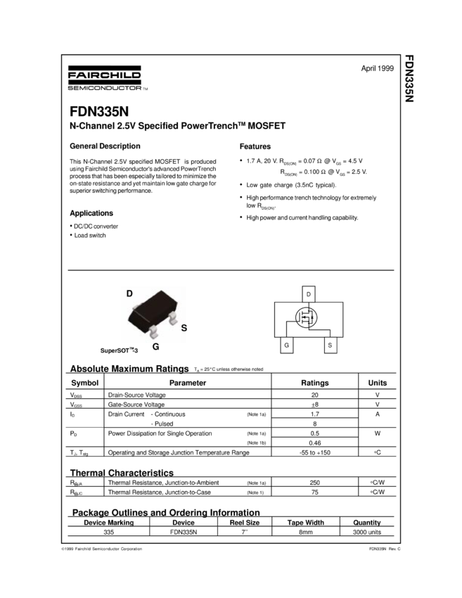 N-Channel 2.5V Specified PowerTrench™ MOSFET 20V, 1.7A, 70mΩ