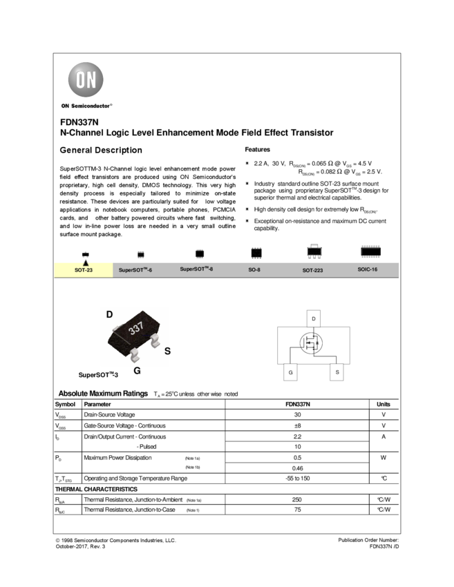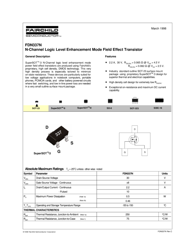 N-Channel Logic-Level Enhancement Mode Field Effect Transistor 30V, 2.2A, 65mΩ
