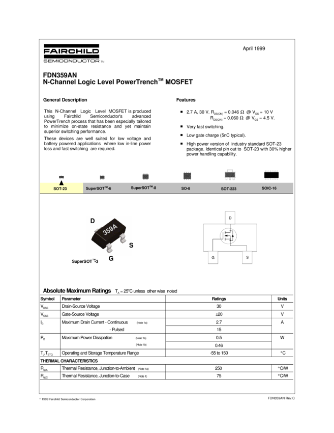 N-Channel Logic Level PowerTrench™ MOSFET 30V, 2.7A, 46mΩ