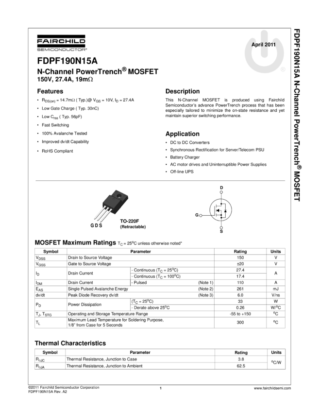 N-Channel PowerTrench<sup>®</sup> MOSFET 150V, 27.4A, 19mΩ