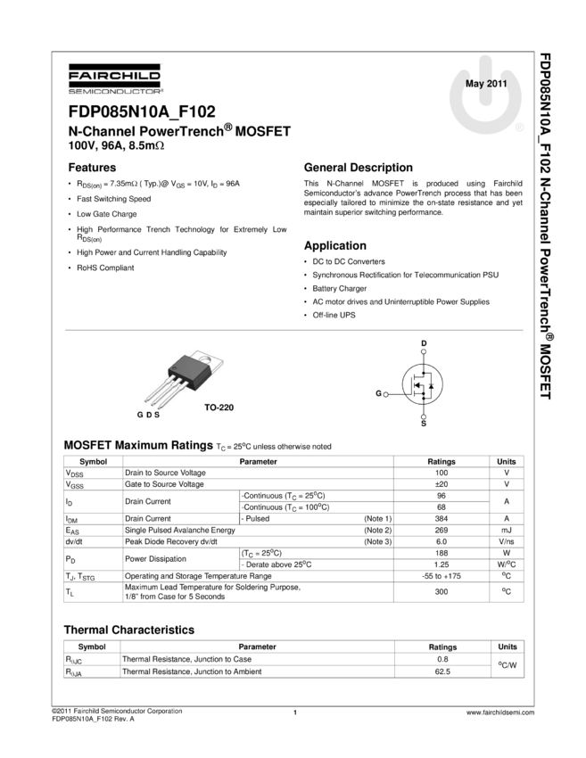 N-Channel PowerTrench<sup>®</sup> MOSFET 100V, 96A, 8.5mΩ